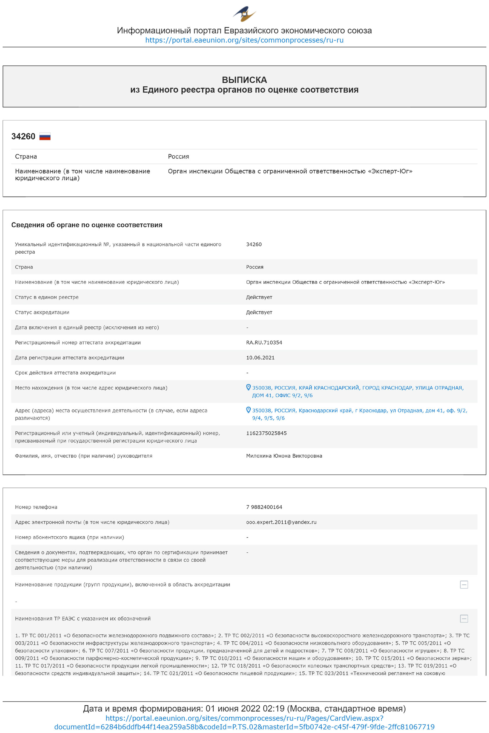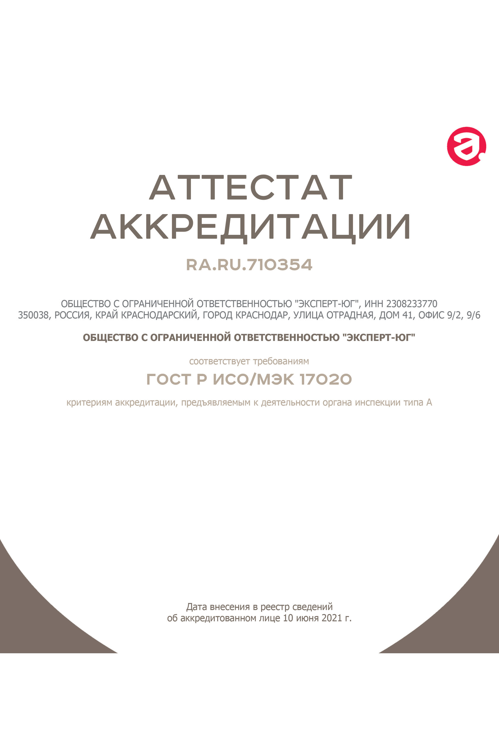 в реестре аккредитованных лиц № RA.RU.710354 от 10.06.2021 г.